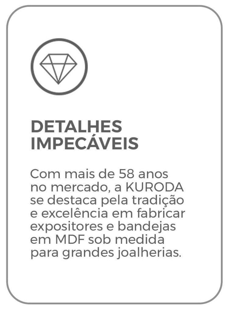 Com um atendimento personalizado e produtos de alta qualidade, a KURODA se destaca por seu compromisso em entregar não apenas expositores, mas verdadeiras obras de arte que valorizam cada jóia exposta. Seu diferencial está não apenas na excelência de seus produtos, mas na história